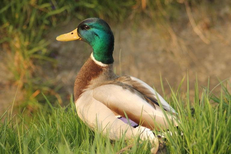 Keywords: drake duck mallard water bird bird animals nature meadow sunlight
