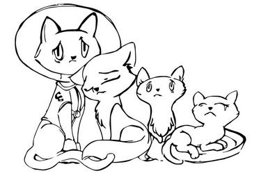 Keywords: drawing stencil black and white cat family sad astronaut cookie cartoon comic