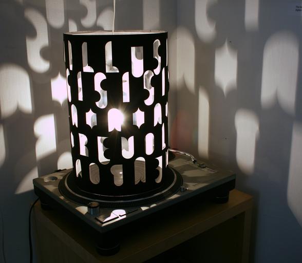Keywords: Dreammachine.jpg a dream machine created by Gareth Spor with Raimundas Malasauskas Own 4/9/2008 Garethspor Revolving lanterns Kinetic art Light art Stencils Phonograph turntables Turntables