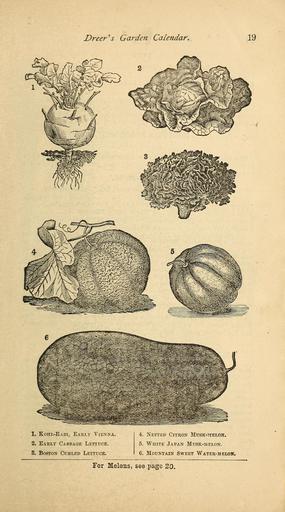 | Keywords: Dreer's garden calendar (16446550594).jpg  Dreer' s Garden Calendar <br> 19 <br> 1 Kohl-Kabi Early Vienna <br> 2 Early Cabbage Lettitce <br> 3 Boston Curled Lettuce <br> 4 Netted Citron Musk-meion <br> 5 White Japan Musk-melon <br> 6 Mountain Sweet Water-melok <br> For Melons see page 2\i 43857276 149502 77662 Page 19 Text http //www biodiversitylibrary org/page/43857276 1884 10 5962/bhl title 77662 Henry A Dreer Firm ; Henry G Gilbert Nursery and Seed Trade Catalog Collection Biodiversity Heritage Library Dreer's garden calendar 1884 Catalogs Flowers Gardening Henry A Dreer Firm Internet resource Nursery stock Seeds U S Department of Agriculture National Agricultural Library bhl page 43857276 dc identifier http //biodiversitylibrary org/page/43857276 bhlGardenStories henry a dreer firm u s department of agriculture national agricultural library bhlgardenstories Information field Flickr posted date ISOdate 2015-04-07 Check categories 2015 August 23 CC-BY-2 0 BioDivLibrary https //flickr com/photos/61021753 N02/16446550594 2015-08-23 20 55 01 cc-by-2 0 PD-old-70-1923 Dreer's garden calendar Photos uploaded from Flickr by Fæ using a script |