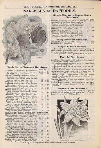 MAKE A MEME View Large Image September to December 1900 (16444933185).jpg HENRY A DREER 714 Chestnut Street Philadelphia Pa <br> NARCISSUS or DAFFODILS <br> sMX <br> wtm <br> m <br> mm <br> m <br> X Emperor <br> Single Large Trumpet Narcissus <br> Albicans white ...