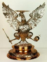 Keywords: Drentwett White Eagle of Poland.jpg Artwork Creator Abraham Drentwett I and Creator Heinrich Mannlich Abraham I Drentwett eagle Heinrich Mannlich base 1665-1666 gilt silver cm 89 Institution Moscow Kremlin Armoury accession number MZ 191 object history ca 1665 commission John II Casimir Vasa Warsaw ProvenanceEvent 1671 gift Alexis I of Russia Moscow Michael Korybut Wiśniowiecki Warsaw credit line The flat plate at the top of the eagle's head served as a stand for the royal crown own See below cc-zero DEFAULTSORT 1665-1666; White Eagle of Poland White Eagle of Poland by Abraham Drentwett I |