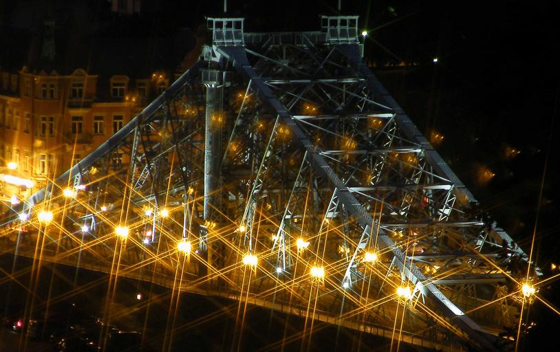 Keywords: dresden blue wonder elbe bridge blue wonder river night bridge steel bridge architecture lighting illuminated elbe bridge building night photograph