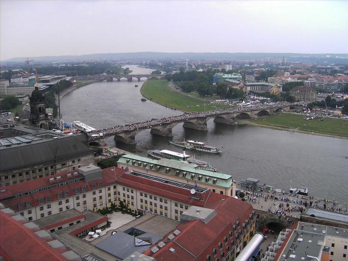 | Keywords: Dresden-Frauenkirche-View.from.top.06.JPG Description Dresden View from Frauenkirche Bridge across Elbe is closed for regular traffic Due to City festival it is only open for pedestrians Photographer Ingersoll photo taken myself 21 08 2005 Anmerkung Panoramafreiheit Licence Augustusbrücke Marienbrücke Dresden Theaterkahn Dresden |
