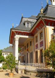 Keywords: Dresden-Pillnitz15.jpg Schloss Pillnitz liegt an der Elbe im gleichnamigen Stadtteil von Dresden Sachsen Deutschland Im Bild Blick auf das Schloss 3 am Nordostrand des Lustgartens Pillnitz Castle is situated on the eastern bank of the Elbe River in Dresden Saxony Germany own Nikater 2005-09-08 Own work all rights released Public domain 51 009271 13 871032 Heading NW Pillnitz Castle |
