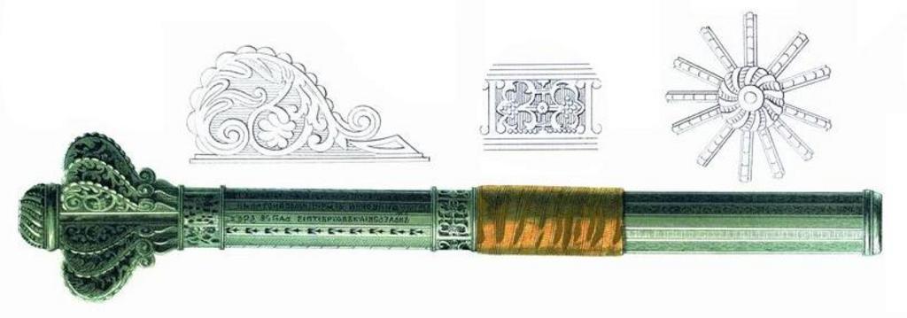 Keywords: Drevnosti RG v3 ill081a - Pernath.jpg ru Пе нач «167 1659 года сентяб я в 20-й день Буздыхан Князя Ю ия икитича Бо ятинскаго взят на бою под Васильковым от Киева пол 30 ве ст побив аказного Гетмана войска Запо ожскаго Константина Выговскаго и К ымскаго у зук-Плана из Тата ; а полковников Ивана Се бина и Василья Выговскаго и многих живых поб али; а Госуда евых людей не убито и в полон не взято ни человека» Д евности Российского госуда ства < 1853 Солнцев Фёдо Г иго ьевич Author died more than 70 years ago - public domain PD-old Antiquities of Russian country - Volume III Ceremonial maces Flanged maces Maces of Russia Pernach |