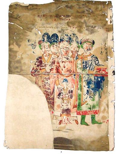 | Keywords: Drevnosti RG v4 ill002.jpg ru Д евности Российского госуда ства Antiquities of Russian country 1846 1853 Том 4 Иллюст ато ru Солнцев Фёдо Г иго ьевич Снимок с заглавного листа ха атейного «Избо ника» 1073 г изоб ажающий великого князя Святослава Я ославича и его семейство Этот д евнейший памятник усской миниатю ной живописи п ежде служил заглавным листом ха атейного «Избо ника» списанного в 1073 г по повелению великого князя Святослава Я ославича дьяком Иоанном В 1817 г он найден был в Воск есенском ово-Ие усалимском монасты е К Ф Калайдовичем Отделенный от укописи он тепе ь х анится в московской О ужейной палате а самый «Избо ник» в Пат иа шей библиотеке Такими миниатю ами изд евле ук ашались ха атейные укописи в Г еции Болга ии Се бии и России; не едко самые пе еписчики бывали вместе и живописцами Сколько д агоценно сие п оизведение миниатю ной живописи по своей 777-летней д евности столько любопытно по изоб аженным на нем исто ическим лицам по их костюмам и надписям; следственно оно важно по своему отношению к усской живописи исто ии а хеологии и палеог афии П едставленное здесь изоб ажение подобно д угим находящимся в упомянутой этой укописи писано металлическими к асками на тонком белом пе гаменте коего часть ото вана на левой сто оне и подклеена пе гаментом Хотя от в емени несколько и сте лись к аски но оче ки лица еще довольно сох анились так что можно восстановить их в пе вобытном виде к оме одного лица сове шенно почти изглаженного Рисунок п едставляет нам семейство великого князя Святослава Я ославича внука Владими а I Здесь мы видим великого князя его княгиню Оду у ожденную г афиню Штадскую детей его Глеба Олега Давида Романа и Я ослава Все фигу ы почти одного оста высотой в 6 1/2 голов к оме меньшего сына Святославова Я ослава еще младенца у кото ого п авая ука положена на г удь а левая поднята вве х По сто онам Святослава и Глеба изоб ажены два зве я с поднятыми ушами и к ыльями похожие на д аконов Шесть фигу ясно видны седьмая едва заметна В лицах нет того единооб азия какое по большей части вст ечается на иконах У Святослава и его суп уги у Глеба и Я ослава лица к углые; у пе вого глаза подняты кве ху по-видимому в молитвенном положении коему соответствуют и наче танные слова из псалма; п очие смот ят п ямо или потупив взо У Романа и Глеба лица п одолговатые о все они изоб ажены п ямолично и живописец как заметно пытался каждому из них дать особенную ха акте истику и внешнюю поставу Из этого можно заключить что эти изоб ажения не идеальные но по т етные Замечательно что волосы у Святослава на голове ост ижены высоко по-но маннски Святослав и Роман с усами но без бо оды это не служит ли доказательством что в д евности подобно ге манцам усские б или бо оду и оставляли только усы 1 П име ы тому найдем в отечественных летописях Одежда на них п едставляет смесь усского с византийским а Святославе низменная полук углая шапка с наушинами или заломом и меховой опушкой; на молодых князьях шапки высокие также с наушинами наподобие тата ских Эти шапки не то же ли что клобуки какие на2шивали великие и удельные князья даже в це кви а Святославе Глебе и Я ославе од кафтанов немного ниже колен Это должны быть упот ебительные тогда фофудьи одежда известная у г еков под именем цпцпэдпфпт т е «носимый с поясом кафтан» О них упоминает есто великий князь Владими «повеле метати наволок