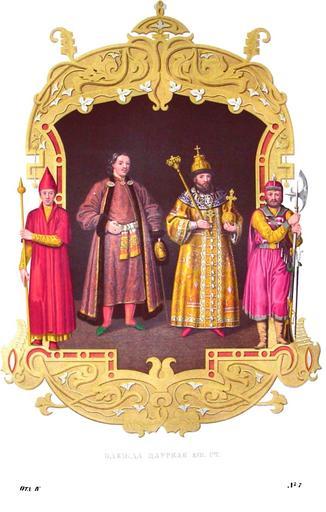 | Keywords: Drevnosti RG v4 ill007.jpg ru Д евности Российского госуда ства Antiquities of Russian country 1846 1853 Том 4 Иллюст ато ru Солнцев Фёдо Г иго ьевич Одежда ца ская XVII в Хотя в надписи на яд двух изоб аженных здесь госуда ей Российских Алексея ихайловича и сына его Пет а I анее был отнесен к XVI и XVII столетиям но оба они собственно п инадлежат к XVII столетию а последний означенный именем Пет а Великого есть не кто иной как боя ин Лев а ышкин о кото ом будет сказано ниже Посему остается упомянуть здесь о пе вом т е о ца е Алексее ихайловиче Его изоб ажение написано Солнцевым согласно с сов еменными сему госуда ю по т етами и свидетельствами иност анных писателей Ца ь п едставлен в полной ца ской утва и а голове его шапка большого на яда на пе сях его св ба мы и к ест в уках у него скипет и де жава Становой его кафтан или платно из аксамита ук ашенный д агоценными каменьями и жемчугами С изоб ажением его любопытно будет с авнить п иметы лица его пе еданные нам очевидцами англичанином Самуэлом Коллинзом в 1658 г немцами Августином ейе бе гом в 1661 г и Яковом Рейтенфельсом в 1670 г Пе вый так описывает осковского ца я «Он к асивый мужчина остом около 6 футов статен больше до оден чем худощав здо ового сложения волосы светло- усые а лоб немного низкий Его вид су ов но взо его величествен стан к асив бо ода окладиста; волосы по обычаю обст ижены в к ужок так что уши сове шенно отк ыты» Почти в тех же че тах п едставляется ца ь Алексей у ейе бе га «Стан его ст оен взо нежен тело белое щеки умяные волосы белоку ые бо ода окладистая; но ца ь го аздо до однее нежели как бы следовало ему быть по летам его» Последний свидетельствует что Ца ь Алексей ихайлович осту с еднего лицо имеет полное несколько к асноватое тело довольно тучное волоса цвету с еднего между че ным и ыжим глаза голубые поступь величавую; на лице его вы ажается ст огость вместе с милостью; взглядом своим он внушает каждому надежду никогда не возбуждая ст аха» Так изоб азили нам иност анцы асп ост анителя и законодателя России пок овителя наук и емесел Во Ф анции в 1667 г на воп ос Дюка де Ли ио о на ужности осковского ца я усский посланник Потемкин отвечал «Его Ца ское Величество ныне в сове шенном воз асте 40 лет а до одством азумом к асотою лица милосе дым н авом и всеми благими годностями Всемогущий Бог ук асил его Великого Госуда я нашего хвалам достойного паче всех людей» Одни из лучших сов еменных ца ю Алексею ихайловичу по т етов находятся в Санкт-Пете бу ге в Романовской гале ее Зимнего дво ца писанный голландцем на холсте и миниатю ный на бумаге в укописи советника священно-цеса ского и ко олевского величества Леопольда I и ге альда Священно-Римского госуда ства Лав ентия Ху елича Рукопись сия с миниатю ами поднесена была авто ом ца ю Алексею Из г ави ованных по т етов сего госуда я известны 1 П и «Уложении» издания 1737 г с надписью внизу «Алексей ихайлович Ца ь и Самоде жец Все оссийский одился ма та 9-го дня 1629 Взошел на п естол в 1645-м а скончался по 31-летнем владении в 1676 г фев аля 8-го дня Alexe Michailowicz Czaar und Selbstbeherscher von gantz Russland geboren d 9 Marty 1629 folgt Seinem Herrn Vater in der Regierung 1645 die Er auch Selbst nach 31 Jahren 1676 d 8 February durch den Todt beschliesset» В д угих экземпля ах Уложения находится по т ет особой г ави овки с усской подписью имени ца я еще д угой с обозначением Wortmann direx Mattarnovi sculps 1736 К 6-му изданию «Уложения» 1788 г п иложен по т ет г ави ованный г убее п очих 2 В книге Elogii di capitan