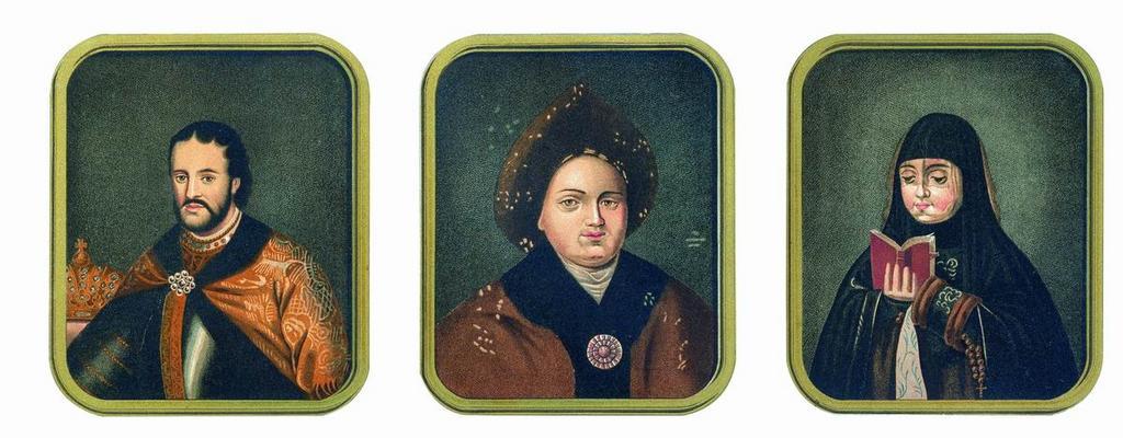| Keywords: Drevnosti RG v4 ill009z.jpg Д евности Российского госуда ства 215 По т еты А ца я Иоанна Алексеевича Б ца евны а га иты Алексеевны В ца ицы Евдокии Федо овны Эти по т еты сняты с х анящихся в московской О ужейной палате по т етов писанных масляными к асками в XVII столетии Пе вый олицетво яет нам сына ца я Алексея ихайловича Иоанна Сей ца евич с 1682 г ца ь скончался 29 янва я 1696 г на 30-м году от ождения По сказанию сов еменных ему писателей он был «весьма слабого здо овья болен глазами и близо ук»1 Бледное болезненное лицо его на по т ете подтве ждает это свидетельство Иоанн изоб ажен в б оне све х коей надета шуба в аспах застегнутая на г уди запоной из д агоценных камней П ед ним лежит на столе ко она ца ская С по т ета сего ца я х анящегося в Кунсткаме е Академии наук п иложен литог афи ованный п отивень к «Исто ическому описанию одежды и воо ужения оссийских войск» ч I а д угом по т ете изоб ажена дочь ца я Алексея ихайловича а фа в инокинях а га ита скончавшаяся 19 июля 1707 г на 55-м году от ождения2 Она пог ебена в усыпальнице Александ овского Успенского монасты я где над г обницею поставлен по т ет сей ца евны по свидетельству п офессо а Шевы ева «имеющий большое сходство с Пет ом Великим и Ца ем Алексеем ихайловичем»3 о на п иложенном здесь по т ете не видно такого сходства ни с отцом ни с б атом Ца евна изоб ажена в светском на яде по обычаю своего века голова у нее пок ыта т еухом или шапкой с собольим околышем; под ним обыкновенно висел подзатыльник низанный жемчугом Шуба на ней с отложным собольим во отником и запоной на г уди Т етий по т ет п едставляет пе вую суп угу Пет а I Евдокию Федо овну из ода Лопухиных дочь Ила иона Аб амовича кото ый по д евнему обычаю с возведением его в чин боя ина пе еименован был Федо ом а ца ская невеста Па аскевия его дочь Евдокиею Судьба сей ца ицы известна из исто ии Пет а I писанной под его влиянием Здесь видим Евдокию в инокинях Елену в одеянии невольной че ницы кото ое она носила около 30 лет с 1689-го по 1727 г пе еводимая из монасты я в монасты ь под ст огим надзо ом как п еступница Забытая всеми она достигла 58-го года своей жизни о с восшествием на п естол ее внука Пет а II Елена получив свободу из Успенского Ладожского монасты я пе еехала в оскву и там заменила иноческую изу ца ской одеждой Для нее оп еделен был особый п идво ный штат Она пе ежила ко онование об учение и п еждев еменную кончину своего внука; п еставилась 27 августа 1731 г на 62-м году жизни и пог ебена в собо ной це кви Вознесенского девичьего монасты я http //john-petrov livejournal com/1328766 html century 19 Д евности Российского госуда ства PD-old-100 Eudoxia Lopukhina as nun parsuna Ivan V of Russia in portraits 17th-century portraits of Russia Antiquities of Russian country - Volume IV Files uploaded by Shakko from various sources Marfa Alexeevna |