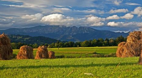 Keywords: dried grass podhale tatry mountains poland landscape view nature meadow tree sky spruce green ridge summer autumn harvest clouds sunny colored blue white hay grass forest kopka haystack yellow shadows the colour of the the background field aura sunset holidays tourism clean dry grass skoszona |