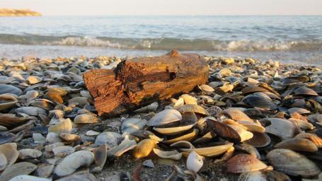 Keywords: drift wood sand mussels beach wood flotsam sea sand beach