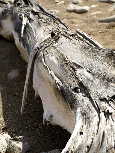 Keywords: drift wood wood log weathered dry nature old grey beige tribe bark dead plant rau sand beach beach flotsam
