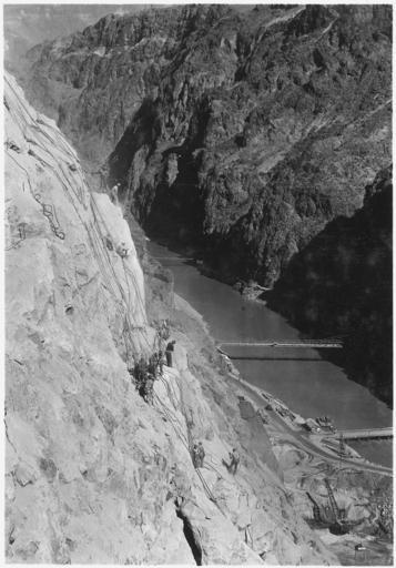 | Keywords: Drillers and scalers at work in intake tower locations on Nevada side. Note five-yard dragline excavator in upper... - NARA - 293760.jpg Scope and content Photograph from Volume Two of a series of photo albums documenting the construction of Hoover Dam Boulder City Nevada General notes 293760 Local identifier Department of the Interior Bureau of Reclamation Engineering and Research Center 05/18/1981 - 03/04/1988 NARA's Rocky Mountain Region Denver NRGA Building 48 Denver Federal Center West 6th Avenue and Kipling Street Denver CO 80225-0307 1932-10-28 Record group Record Group 115 Records of the Bureau of Reclamation 1889 - 2008 Record group ARC 444 Photograph albums compiled 1903 - 1972 Series ARC 293611 File unit File unit ARC Variant control numbers NAIL Control Number NRG-115-CONSTPHO85006-BC21433 Other versions <gallery> File Drillers and scalers at work in intake tower locations on Nevada side Note five-yard dragline excavator in upper - NARA - 293760 tif tif </gallery> NARA-cooperation PD-USGov People associated with the construction of Hoover Dam workers high scalers Suspension bridges in Arizona Hoover Dam low level Suspension bridges in Nevada Hoover Dam low level Bridges across canyons in Arizona Hoover Dam low level Bridges across canyons in Nevada Hoover Dam low level Bridges over the Colorado River Hooveer Dam low level 1932 in the United States Hoover Dam Construction of the Hoover Dam suspension bridge low level |