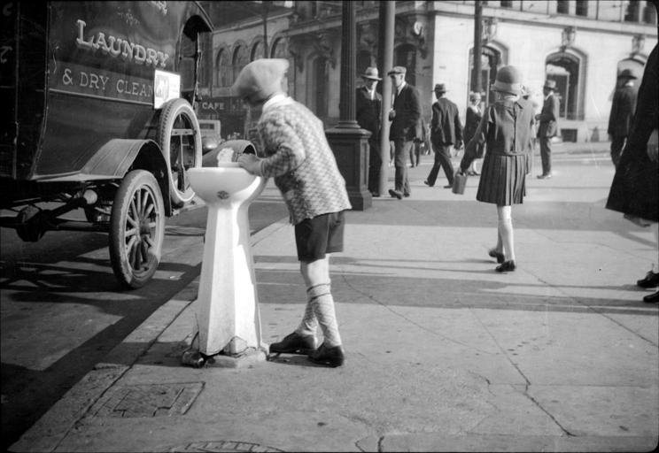 | Keywords: blackandwhite monochrome sidewalk road black and white Drinking fountain on Hastings Street VPL Accession Number: 19147 Date: 192- Photographer/Studio: Timms, Philip Content: Young boy at an outdoor drinking fountain on Hastings Street. Several pedestrians are on the sidewalk and a laundry truck is parked beside the fountain. Topic: Streets Children Fountains More information on our historical photograph collection: www.vpl.ca/find/cat/C393/ Drinking fountain on Hastings Street VPL Accession Number: 19147 Date: 192- Photographer/Studio: Timms, Philip Content: Young boy at an outdoor drinking fountain on Hastings Street. Several pedestrians are on the sidewalk and a laundry truck is parked beside the fountain. Topic: Streets Children Fountains More information on our historical photograph collection: www.vpl.ca/find/cat/C393/ |