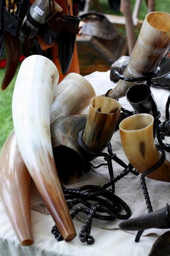 Keywords: drinking horn horn met wine medieval market middle ages stand sale