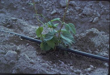Keywords: Drip irrigation.jpg en Drip irrigation uses a series of pipes and tubes to deliver water to the base of each plant Because little water is lost to evaporation and runoff this method uses less water than sprinklers and trenches http //www ers usda gov/Briefing/WaterUse/Images/drip1 jpg United States Department of Agriculture 2004-10-26 PD-USGov Irrigation