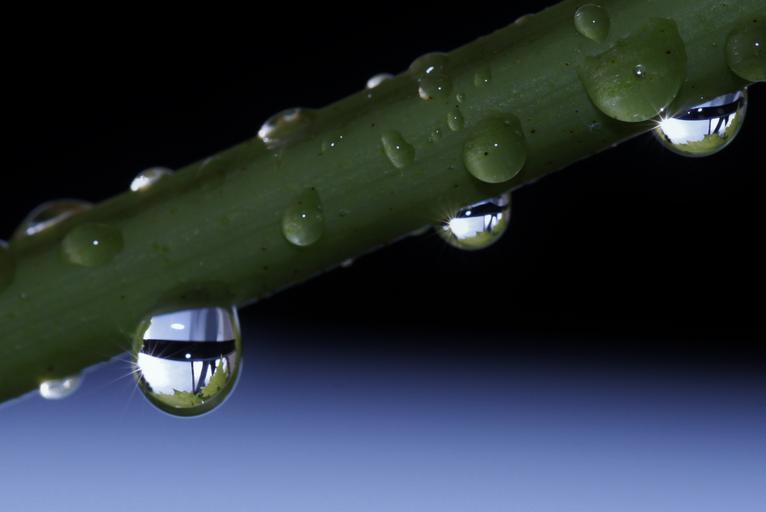 Keywords: drip raindrop drop of water beaded close nature water macro surface tension mirroring halm plant sparkle shiny transparent refreshment