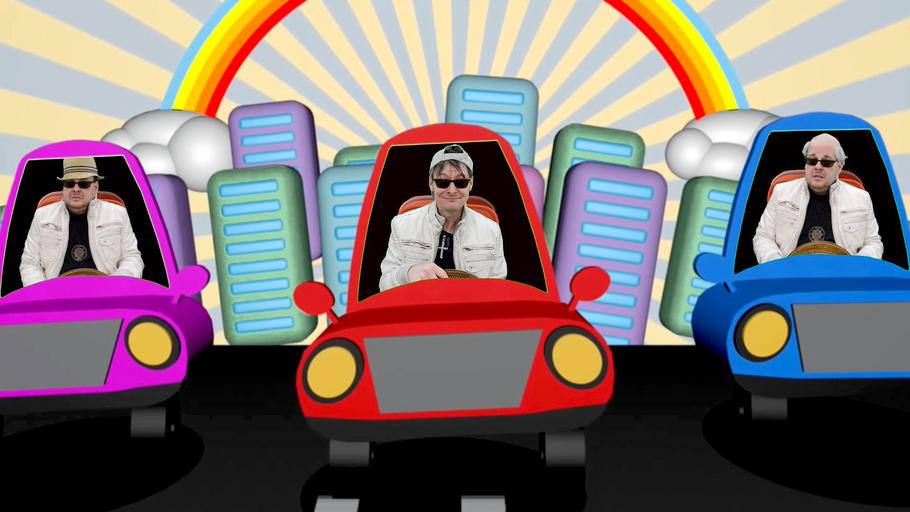 Keywords: driver autos comic traffic road driving a car rainbow city greenbox trio
