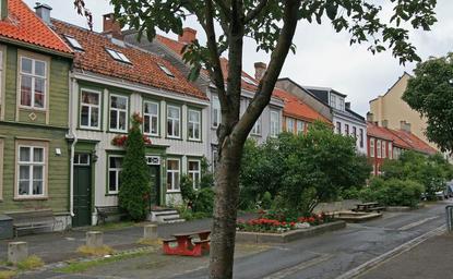 Keywords: Dronningens gate Trondheim II.jpg 63 25 51 3 N 10 23 5 4 E heading 080 Row of 19th C houses in Dronningens gate Trondheim Norway Erected in the years following a great fire in 1942 no Parti fra Dronningens gate Trondheim mellom Hospitalsgata og Tordenskiolds gate Alle husene er bygd rett etter bybrannen i 1842 own Mahlum 2008-09-13 Dronningens gate Trondheim