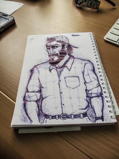 Keywords: drow drawing art artistic table portrait 2016 man designer caricature office free image pen cap shirt barbu