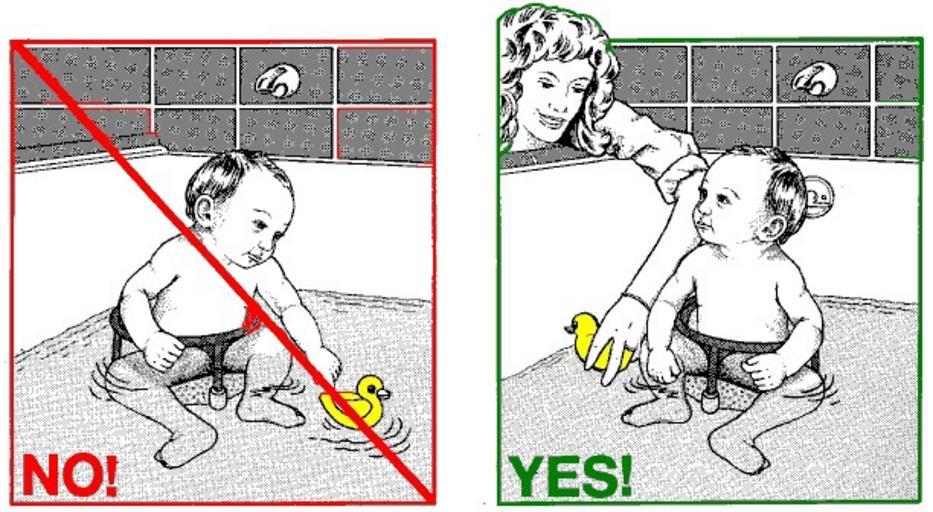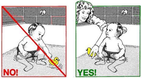 | Keywords: Drowning safety children CPSC.jpg CPSC Warns of Drowning Hazard With Baby Bath Seats or Rings The U S Consumer Product Safety Commission is aware of 66 deaths associated with baby bath seats or rings since 1983 These bath rings usually contain three or four legs with suction cups that attach to the bottom of the tub However the suction cups may suddenly release allowing the bath ring and baby to tip over A baby may also slip between the legs of the bath ring and become trapped under it Do not rely on these devices to keep baby safe in the bath Parents or other attendants must never leave a baby alone in these bath support rings Even turning away to answer the doorbell or telephone could result in injury or drowning of the baby Source http //www cpsc gov/cpscpub/pubs/5084 html ' Information presented on these pages is public information You may freely distribute copy or link to any of the information presented If you do so please use appropriate byline/photo/image credit PD-USGov Safety People in bathtubs Water safety Rubber ducks Bathing children How-tos Green and red |
