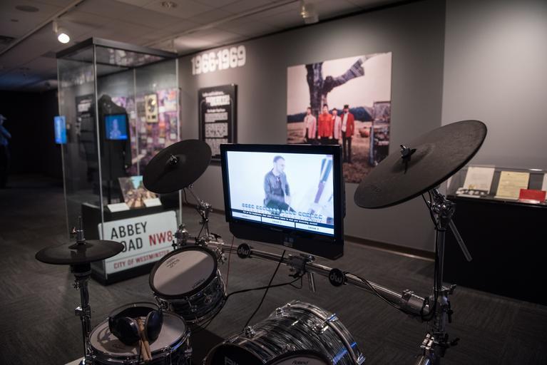 Keywords: Drum-kit for interactive lesson - "Ladies and Gentlemen... the Beatles!" exhibit at LBJ Presidential Library, Austin, TX, 2015-06-10 10.13.59.jpg Ladies and Gentlemen The Beatles a traveling exhibit curated by the GRAMMY Museum® and Fab Four Exhibits is on display at the LBJ Presidential Library from June 13 2015 through January 10 2016 Photo by Lauren Gerson <br/> ---- Flickr album https //www flickr com/photos/lbjlibrarynow/sets/72157654419362661 Exhibit Ladies and Gentlemen the Beatles Ladies and Gentlemen ¦The Beatles is a traveling exhibit curated by the GRAMMY Museum® and Fab Four Exhibits that explores the impact The Beatles' arrival had on American pop culture including fashion art advertising media and music from early 1964 through mid-1966 “ when the British boy band was at its peak On display will be more than 400 pieces of memorabilia records rare photographs tour artifacts video and instruments from private collectors and the GRAMMY Museum including the original Ludwig drum head Ringo played on The Ed Sullivan Show It even includes an oral history booth where visitors can leave their own impressions of the timeless group Photos by Lauren Gerson https //www flickr com/photos/lbjlibrarynow/18720173631/ DIG13757-003 2015-06-10 10 13 Lauren Gerson Uploaded to Flickr by https //www flickr com/people/100836534 N04 LBJ Foundation PD-USGov Because this photograph was published on Flickr by Lyndon Baines Johnson Library and Museum which is administered by the National Archives and Records Administration an independent agency of the United States government cc-by-2 0 LBJLibraryNow http //flickr com/photos/100836534 N04/18720173631 2015-06-12 07 50 19 cc-by-2 0 Electronic drums Music lessons Ladies and Gentlemen the Beatles Exhibitions at the Lyndon Baines Johnson Library and Museum 2015 in Austin Taken with Nikon D750 Files from LBJ Foundation Flickr stream |