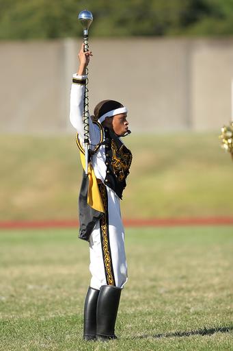 Keywords: drum major band leader football game marching band marching uniform school leader american football field teenager field grass boy