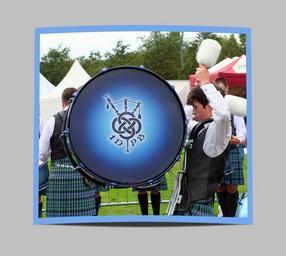 Keywords: drum man drummer scottish blue pipeband competition championships entertainment music beat male kilt musician instrument base-drum playing