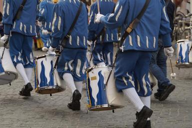 | Keywords: drummer musician music group marching in a row single file drums blue white fool costume swabian alemannic customs haestraeger carnival holzfigur masquerade fools jump panel strassenfasnet carved mask wooden mask tradition custom haes fasnet move fools guild guild group baden württemberg germany friendly winter drive |