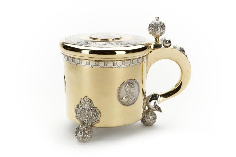 Keywords: Dryckeskanna med lock, av silver - Skoklosters slott - 92224.tif LSH artwork Johan Lorentz Starin guldsmed sv Lött handtag med gjuten maskaron Tre gjutna kulfötter Vid mynningen stämplad bård och på locket graverad bård Minnesmedalj av Karl XII's födelse 17 juni 1682 två Karl XII's medaljer I botten infälld minnesmedalj över slaget vid Narva 20 november 1700 På locket infälld medalj - hundraårsminnet av Uppsala möte 1693 På livet graverad inskrift A O 1738 En Kongelig Gåwa <br/>Stämplar St Erik i profil - IS SB 657 - R - åldermansranka Johan Lorentz Starin Stockholm 1729 original caption Dryckeskanna med lock av silver <br/> Nyckelord 1700-tal Dryckeskärl Kannor Dryckeskannor Prydnader Minnesmedalj Föremålsbild 1729 size mm 155 215 SKO Magnus Brahe greve riksmarskalk Aajaton aarre - Tidlös skatt 2009-2010 Tavastehus slott / Hämeen Linna 54 silverföremål fr Hwy; 12 st fr Sko Aajaton aarre - Tidlös skatt 2009-2010 Häme Castle Aajaton aarre - Tidlös skatt 2010-2011 Turku Castle KARL XII PFALZ place of origin original filename sm_dig8566 21534 inventory number SKO 224 92224 CC-BY-SA Erik Lernestål 1729 works Cans Beakers Erik Lernestål Media contributed by LSH unmatched creator Media contributed by LSH unmatched keyword Media contributed by LSH 2014-11 |