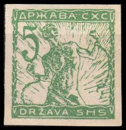 | Keywords: DrzavaSHSverigar5h1919imperf.jpg  Verigar issue issued in Slovenian regions of the State of Slovenes Croats and Serbs 5 hellers imperforated 1919 Почтовая ма ка Ве ига выпущена в словенских областях Госуда ства Словенцев Хо ватов и Се бов 5 гелле ов без пе фо ации 1919 own collection 1919-01-03 Creator Ivan Vavpotič PD-old-auto 1943 Verigar |