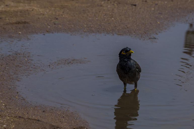 Keywords: birds india photography splash street bath outdoor animal bird aquatic bird Mynah posing for camera. Mynah posing for camera.