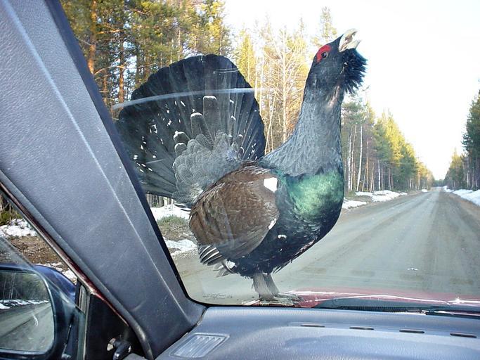 MAKE A MEME View Large Image capercaillie car road outdoor windshield