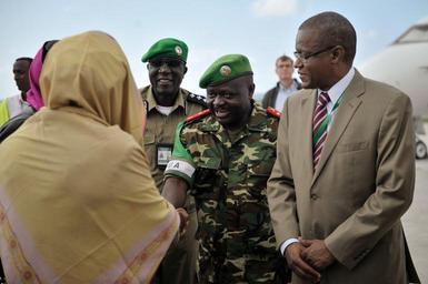 Keywords: The Special Envoy on Women, Peace and Security of the Chairperson of the African Union Commision, Bineta Diop , meets with the African Union Mission in Somalia's (AMISOM) Force Commander, Lt. General Silas Ntigurirwa, at Mogadishu's Aden Adde airport in Somalia on November 25. The Special Envoy on Women, Peace and Security of the Chairperson of the African Union Commision, Bineta Diop, landed in Somalia today to begin a two day visit in which she will meet with both government and African Union officials to discuss women's issues in the country. AMISOM Photo / Tobin Jones The Special Envoy on Women, Peace and Security of the Chairperson of the African Union Commision, Bineta Diop , meets with the African Union Mission in Somalia's (AMISOM) Force Commander, Lt. General Silas Ntigurirwa, at Mogadishu's Aden Adde airport in Somalia on November 25. The Special Envoy on Women, Peace and Security of the Chairperson of the African Union Commision, Bineta Diop, landed in Somalia today to begin a two day visit in which she will meet with both government and African Union officials to discuss women's issues in the country. AMISOM Photo / Tobin Jones |