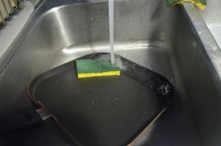 Keywords: pan pans sponge cleaning dish dishes water chore sink clean soap spray dirty housekeeping