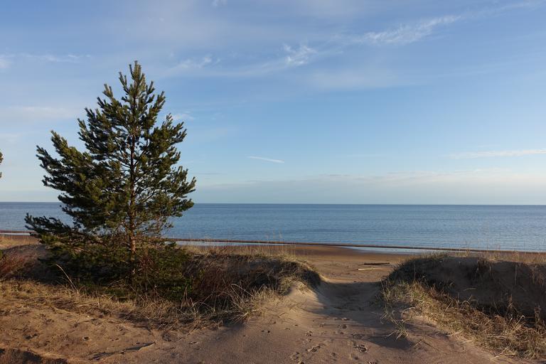 Keywords: pine sand beach horizon footprints outdoor tree plant