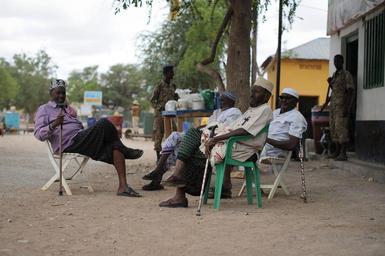 | Keywords: outdoor Men sit at a coffee shop in Bulo Burte, Somalia, on August 12. AMISOM's Humanitarian Unit today conducted an assesment of Bulo Burte town in the Hiraan region of Somalia. The team spoke to several civil society groups while on the ground and visited various areas around the town. AMISOM Photo / Tobin Jones Men sit at a coffee shop in Bulo Burte, Somalia, on August 12. AMISOM's Humanitarian Unit today conducted an assesment of Bulo Burte town in the Hiraan region of Somalia. The team spoke to several civil society groups while on the ground and visited various areas around the town. AMISOM Photo / Tobin Jones |