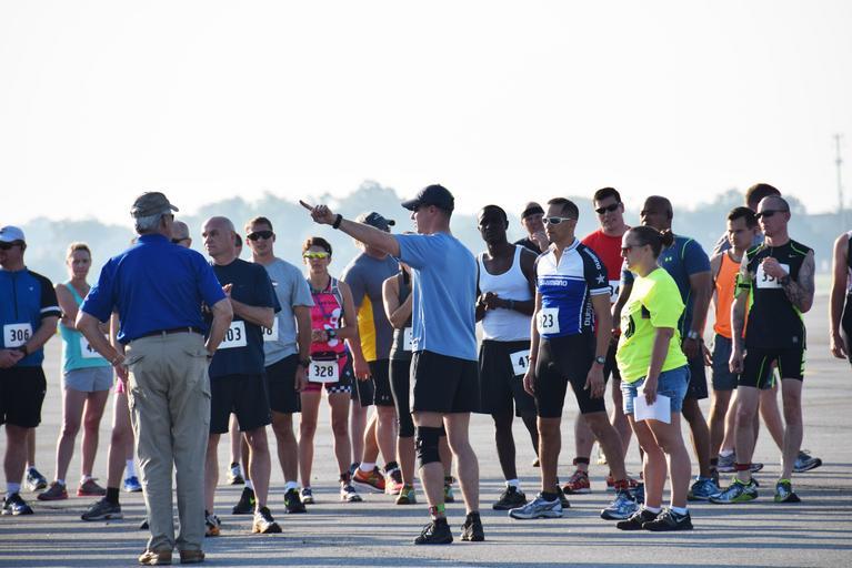 | Keywords: sport outdoor running runner team sport people athlete Duathlon participants get route instructions from Lt. Col. Will Bowman, Hunter Army Airfield garrison commander, before the 8 a.m. start. Sonny Dixon, left, an award-winning news anchor and military community supporter, spoke to the group before they took off and cheered them on throughout the competition. Duathlon participants get route instructions from Lt. Col. Will Bowman, Hunter Army Airfield garrison commander, before the 8 a.m. start. Sonny Dixon, left, an award-winning news anchor and military community supporter, spoke to the group before they took off and cheered them on throughout the competition.  |