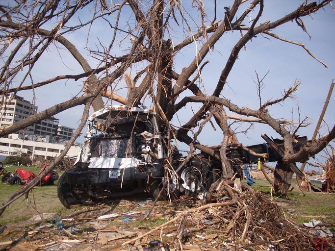 | Keywords: DSCI3029.JPG en Heavy truck wrapped around a tree after EF-5 tornado on May 22 2011 Alex and Savannah Hampton camera Alex and Savannah Hampton 5-31-2011 Cc-zero Dead trees Damage Destructions Disasters Unidentified trucks 2011 Joplin tornado Road accidents |