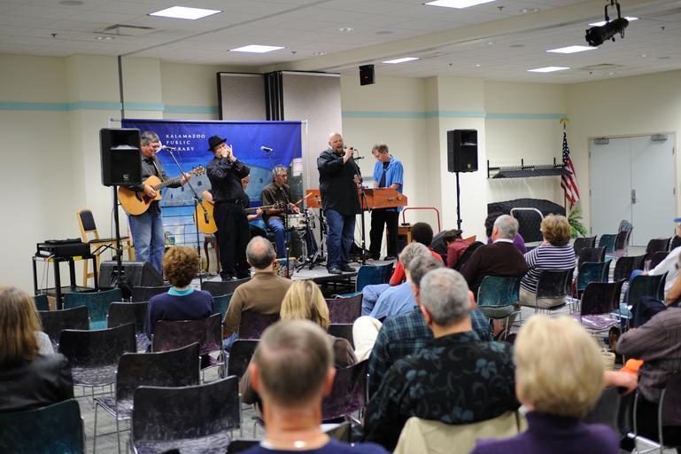Keywords: The Blue Moon Blues Band played an intimate unplugged performance on Wednesday, October 21st, 2009, at Central Library, as part of KPLs ongoing Live Music series. music concert michigan blues kalamazoo