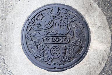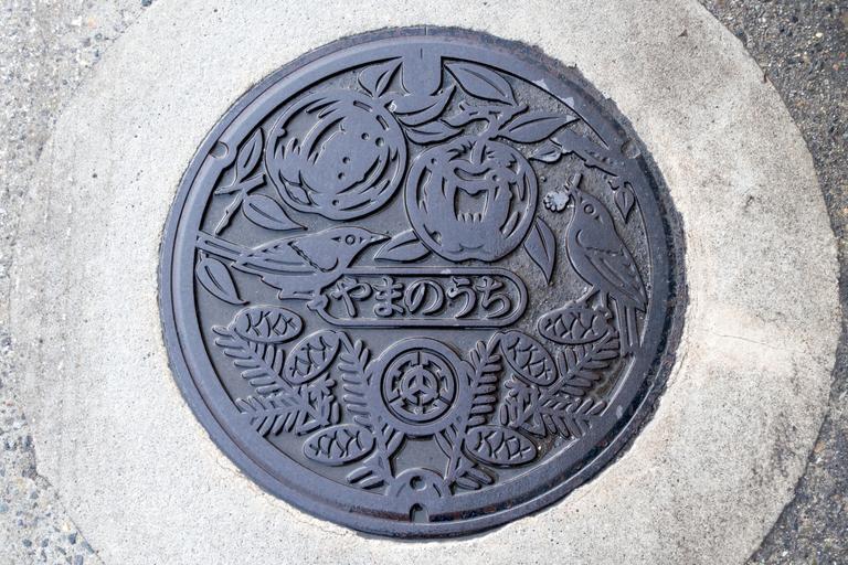 Keywords: snow nagano japan onsen village manhole cover shibu yamanouchi round circle text writing Manhole cover for Shibu Onsen Manhole cover for Shibu Onsen