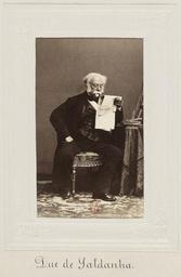 Keywords: Duc de Saldanha photograph BNF Gallica.jpg João Oliveira e Daun duc de Saldanha 1790-1876 plusieurs fois ministre quatre fois premier ministre du Portugal au XIXème siècle João Carlos Saldanha de Oliveira Daun 1st Duke of Saldanha 1790-1876 portuguese statesman several times minister and four times Prime minister of Portugal during the 19th-century circa 1865 for photograph 2013-02-16 01 08 56 for upload ARK-BNF lien/link http //gallica bnf fr/ark /12148/btv1b8432966c/f27 item ici/here unknown Upload stitch of 6 pictures and restoration by User Jebulon Usual improvements like rotation and crop Cleaning of dirt cloning out of spots and tears due to age levels adjustments reduction of saturation increasing contrast With GIMP PD-old-100 de João Carlos de Saldanha Oliveira e Daun es João Oliveira e Daun eu João Oliveira e Daun Saldanhako dukea fr João Oliveira e Daun duc de Saldanha gl João Oliveira e Daun Duque de Saldanha ja ジョアン・デ・サルムーニャ pt João Carlos de Saldanha Oliveira e Daun Duque de Saldanha Duke of Saldanha photograph 00 19 21 February 2013 UTC Duc de Saldanha photograph BNF Gallica jpg Uploaded with UploadWizard João Oliveira e Daun duque de Saldanha 19th-century portrait photographs of men Black and white photographic portraits of politicians Reading men 19th-century portrait photographs of sitting men at full length Images from Gallica Chairs in portraits Journal des débats Valued images by Jebulon