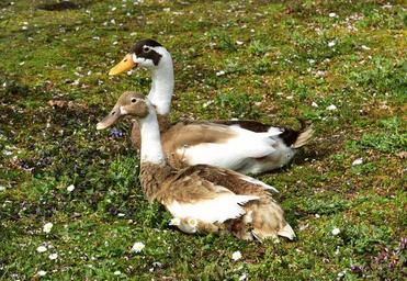 Keywords: duck concerns pair attention feather brown rush green animal world rest two