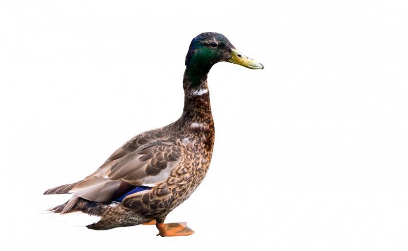 Keywords: duck mallard white flying background drake clipping bird yellow male waterfowl beak path animal profile isolated