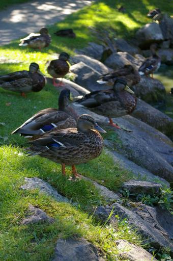 Keywords: duck stones nature bird pond wild animal wildlife outdoor park fauna natural standing