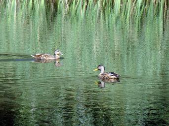 Keywords: duck wild ducks pond lake reeds reflection glitter ripple pattern green bright