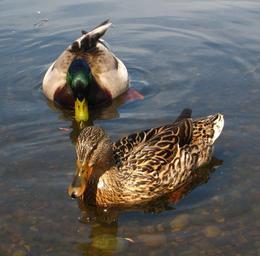 Keywords: ducks mallard male drake female wildlife waterfowl lake swimming birds fowl