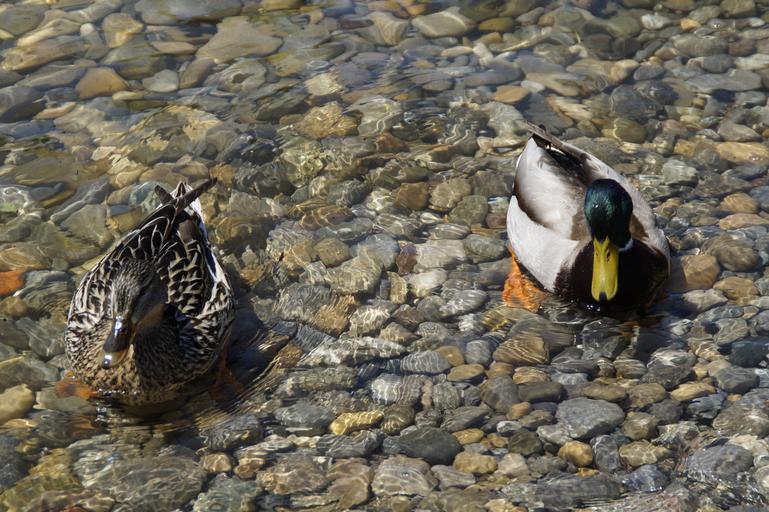 Keywords: ducks mallards birds duck bird water bird aquatic animal animal swim lake pond water animal world nature poultry female woman feather plumage swimming duck waters lakeside male man and woman clear couple pair togetherness