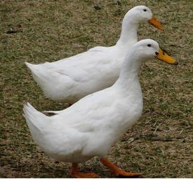 Keywords: ducks white birds pair poultry cute waterfowl wildlife walking