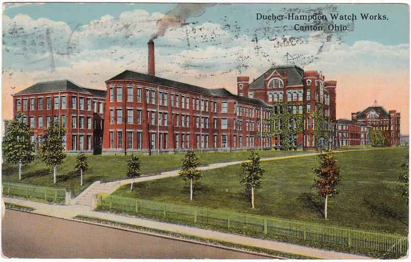 Keywords: postcard vintage ohio canton, ohio cantonohio dueber-hampden watch works dueberhampdenwatchworks l. schartenberg & co., inc. lschartenbergcoinc curt teich co. curtteichco divided back era dividedbackera 1915 1910s canton used outdoor architecture building Description on card: Dueber-Hampden Watch Works, Canton, Ohio. Publisher: L. Shartenberg & Co., Inc., Akron, Ohio | C.T. Photochrome by Curt Teich Co., Chicago, Illinois Postmark on back of card: Apr 13, 1915(?) 11:30 a.m. Used. Publisher Note: Curt Teich emigrated to Chicago in 1895. He had worked as a lithographer in Lobenstein, Germany. He founded the Curt Teich Company in 1898, concentrating on newspaper and magazine printing. He was an early publisher of postcards, but he didn't begin printing them himself until 1908. According to MetroPostcard.com, "As his competition dwindled, his sales expanded and his American factories would eventually turn out more postcards than any other in the United States. " The company was best known for their wide range of advertising and postcards of North America. By the 1920s, it was producing so many postcards with borders that they became recognized as a type dubbed "White Border Cards," creating an "era." Curt Teich started using offset presses in 1907, but it took a number of years before he had offset presses made to his satisfaction, and many more years for him to perfect the method. His innovations in this printing technique directly led to the production of what we now call "linens" by the early 1930s. The company aided the war effort during the second world war by also printing many military maps. Curt Teich eventually turned management of the company over to his son, but he remained active in company operations throughout its history. Curt Teich died in 1974 and the family business was sold to Regensteiner Publishers who continued to print postcards at the Chicago plant until 1978 when the rights to the company name and processes were sold to the Irish company, John Hinde Ltd. Their California subsidiary now prints postcards under the name John Hinde Curteich, Inc. Source: www.metropostcard.com/publisherst.html Description on card: Dueber-Hampden Watch Works, Canton, Ohio. Publisher: L. Shartenberg & Co., Inc., Akron, Ohio | C.T. Photochrome by Curt Teich Co., Chicago, Illinois Postmark on back of card: Apr 13, 1915(?) 11:30 a.m. Used. Publisher Note: Curt Teich emigrated to Chicago in 1895. He had worked as a lithographer in Lobenstein, Germany. He founded the Curt Teich Company in 1898, concentrating on newspaper and magazine printing. He was an early publisher of postcards, but he didn't begin printing them himself until 1908. According to MetroPostcard.com, "As his competition dwindled, his sales expanded and his American factories would eventually turn out more postcards than any other in the United States. " The company was best known for their wide range of advertising and postcards of North America. By the 1920s, it was producing so many postcards with borders that they became recognized as a type dubbed "White Border Cards," creating an "era." Curt Teich started using offset presses in 1907, but it took a number of years before he had offset presses made to his satisfaction, and many more years for him to perfect the method. His innovations in this printing technique directly led to the production of what we now call "linens" by the early 1930s. The company aided the war effort during the second world war by also printing many military maps. Curt Teich eventually turned management of the company over to his son, but he remained active in company operations throughout its history. Curt Teich died in 1974 and the family business was sold to Regensteiner Publishers who continued to print postcards at the Chicago plant until 1978 when the rights to the company name and processes were sold to the Irish company, John Hinde Ltd. Their California subsidiary now prints postcards under the name John Hinde Curteich, Inc. Source: www.metropostcard.com/publisherst.html |